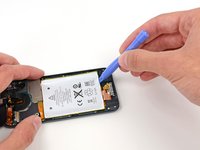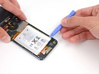 Insert a plastic opening tool into the top right notch and gently pry up on the battery.
