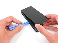 Starting at the top right of the device, insert a plastic opening tool into the gap between the plastic frame and the aluminum rear case.