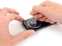 Center the suction cup on the lower section of the glass, with its edge centered over the home button.