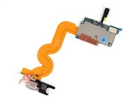 • Confirming our suspicions, the Lightning connector/headphone jack/microphone ribbon cable is indeed soldered to the logic board.