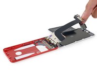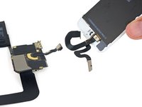 Turning our attention to the "everything else" assembly, we quickly set to work on liberating the front-facing camera, and find ourselves facing a tangle of display cables. It's a good thing our teardown engineer has the touch it takes to handle this messy bundle.
