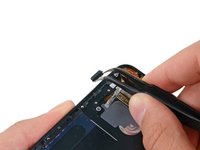 Gently slide the flat end of a spudger underneath the piece of foam tape covering the button ribbon cable.