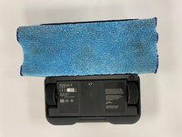 Flip your device upside down and locate the compartment for the cleaning cloth.