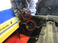 While still pulling the yellow tabs with your index fingers, tilt up the brush guard.