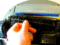 Remove the main brush by grabbing it and pulling it up and out of the Roomba.