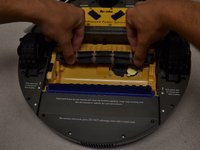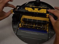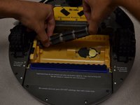 After the guard hinges up, lift the guard up and away from the Roomba.