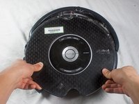 Rotate the Roomba upside-down so the bottom is facing towards you.