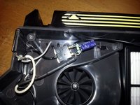 Cut the black wire and insert the circuit. Do not forget some large shrinking tube to cover the whole circuit later (not pictured)