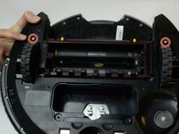 Locate and remove 3x Phillips #0 Point Screws located behind the yellow side brush, bottom let corner of heel assembly, and on the outside of the wheel assembly.