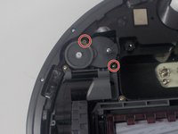 On the underside of the Roomba, use a Phillips #1 screwdriver to remove the two 15.5 mm screws.