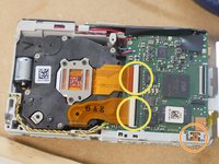 Release lens & CCD flex from ZIF sockets by gently lifting the black locking bar at the rear of the sockets. These may be a little stiff so care is needed.