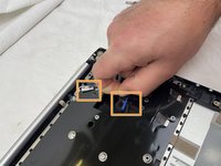 Hold onto the keyboard as you push the keyboard so as not to damage the two cables still attached.