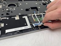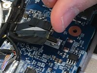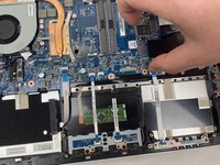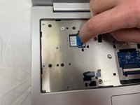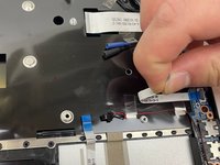 Lift the retaining latch and unplug the ZIF cable found under the keyboard.
