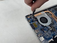 Remove the two Phillips screws securing the CPU fan to the case and remove the fan.