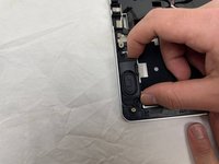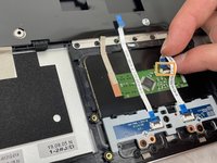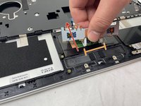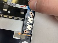 Lift the ZIF connector retaining tab and unplug the button cable on the right.