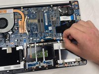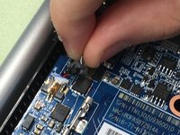 (Blue Cable) Push up on the thin black portion on the connector and gently pull out the blue ribbon cable until it comes out.