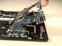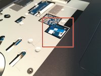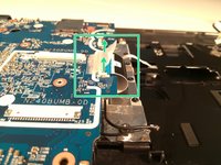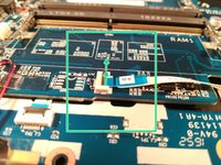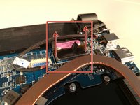 Then, by simultaneously unlocking the left latch, lift the battery out of its socket.