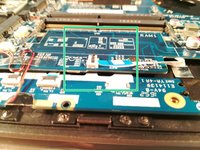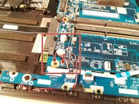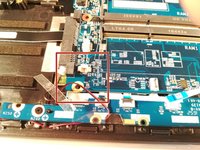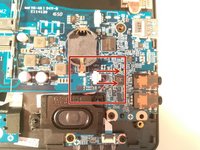 Press with a screwdriver in the red circled area to spread the base of the battery