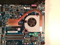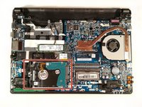Put the computer in the position of the second image while pushing a paper clip into the hole of the screw circled in green until you hear a click