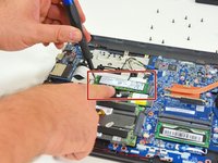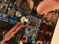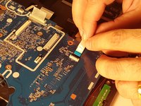 Unscrew the fixing screw with the Philips # 0 screwdriver. Then lift the chipset slightly and remove it from the connector.