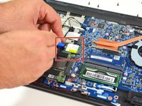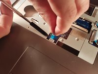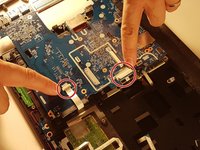 Then, by simultaneously unlocking the left latch, lift the battery out of its socket.