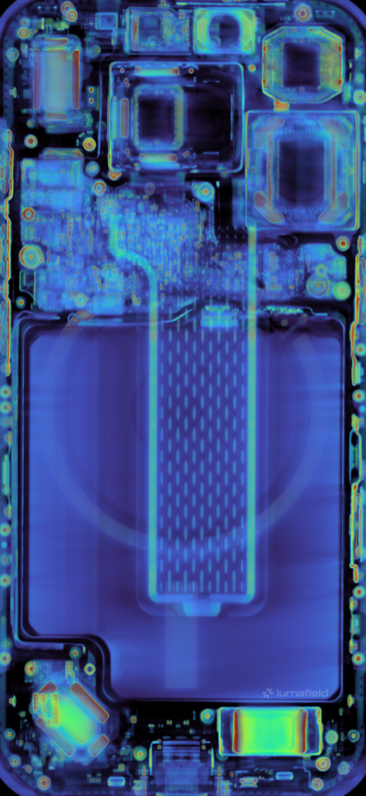 See for yourself, in our CT scan courtesy of our beloved Lumafield Neptune CT scanner, how the vapor chamber sits right between the heat-generating chips and that giant heatsink of a battery: