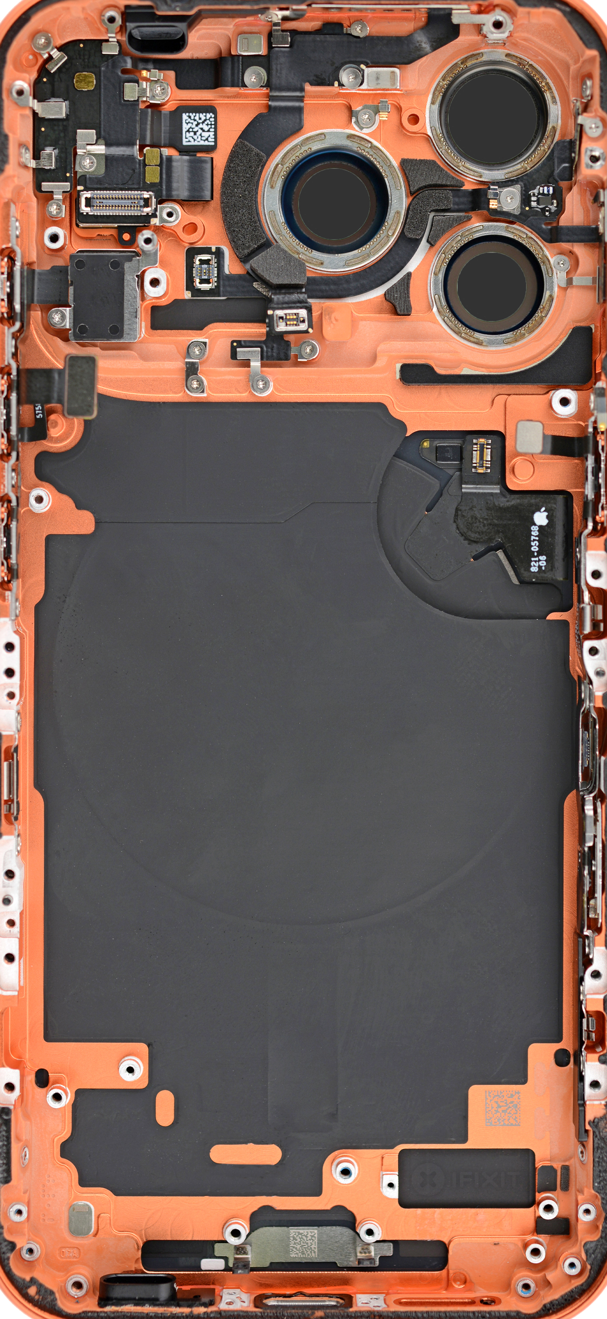 Two years ago, our M3 MacBook Pro teardown covered this in depth. The controlled corrosion eating away at the surface created the matte Space Black finish. We’re seeing the same bumpy finish on the iPhone 17 Pro, this time infused with an orange dye.