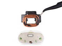 Reaching into the almost-empty case, we fish out the slightly modified (compared to last time) sync button—now with two additional solder points for the ends of the wireless charging coil.