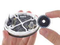 Popping off the final guard, the greased gear is free to go. The Echo's spinning input wheel is similar to that of the Nest Thermostat, but is implemented completely differently.