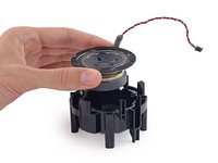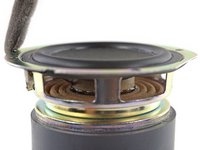 With the outer housing removed, we find some vibration-dampening fabric swaddling the speakers.