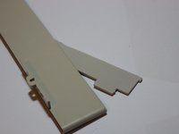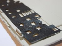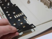 Two plastic tabs hold the keyboard's PCB and switches in place.