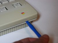 Once unscrewed, flip over the keyboard and release the clips from the top. A plastic opening tool may be helpful, but they are fairly loose.