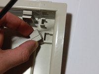 Use your thumbs to carefully press the tabs backwards. Reach under with your forefingers to release the board from the clips.