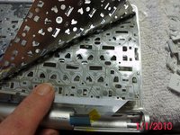 The layers are pulled apart. Frame, plastic separator layer, printed circuit layer