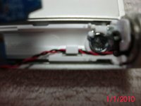 Note the red and black wires. This connector inserts laterally. The wires go to the battery receptor in the middle of the tube.
