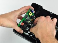 Insert a spudger between the EMI power line filter and the case to separate the double sided tape. The unit comes right off after a couple of spudger twists.