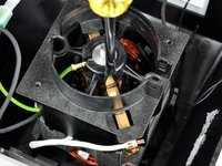 Remove two Phillips screws (of the four holding together the entire device) from the brush/slip ring housing.