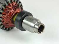 Removing the brush/slip ring housing exposes the support ball bearings at the tail of the motor shaft.