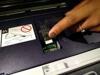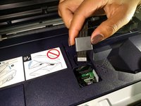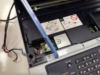 Completely lift up scanner portion of printer and detach visible USB chord.