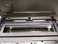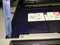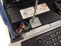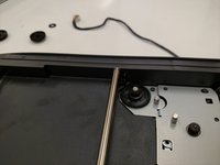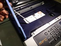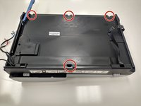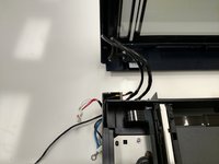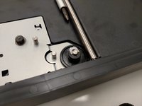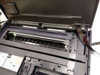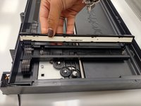 After removing the scanner assembly, place it on its head. Remove the hinge and 4 screws from the lower scanner portion using Philips-head screwdriver.