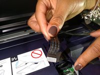 Place on opposite face, and gently pry upper and lower scanner portions apart. Remove the 4 plugs from the lower scanner portion.