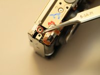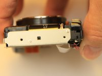 Lift the gray cam on the lend motor assembly and lift the flexible cable out with your tweezers.