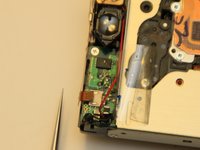Lift the plastic protector off the circuit ribbon on the top of the camera.