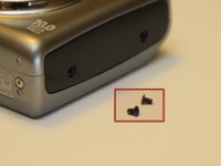 Remove the two fine thread screws on the top of the keypad. Then remove the one coarse thread screw holding the plastic piece in place on the side of the camera. Remove the plastic piece.