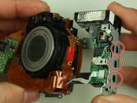 To reassemble the camera, follow all of the steps in reverse order. Take care to reconnect all ribbon cables and secure screws properly.