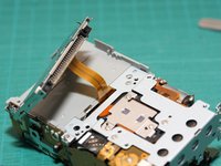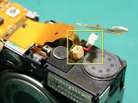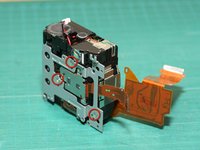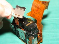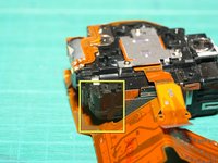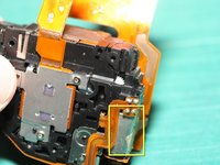 The optical viewfinder can be separated from the lens module - however it's still joined by a flat flex ciruit - be careful not to damage this flex circuit; just leave the viewfinder dangling to the side.