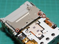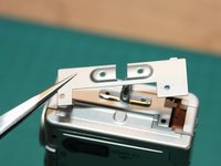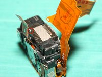 Here is the back of the camera without the shell. You can see the switch contacts on the flex circuit along the bottom. They're attached to the small metal plate that we'll remove in the next step...