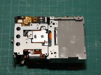 Here's a view of the lens module after removing the flash module. That's the optical viewfinder towards the right of the unit.