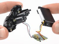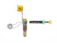 After some picking and prying, we peep a tiny battery pouch deep inside—but it's mostly tiny cables and solder in there.