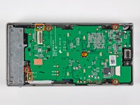 Remove the four Phillips screws securing the aluminum USB bracket to the outer case.